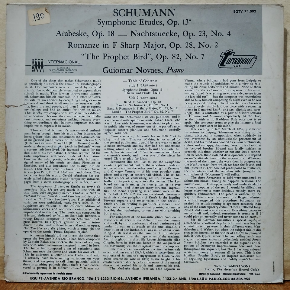 LP Schumann, Guiomar Novaes – Schumann: Piano Music
